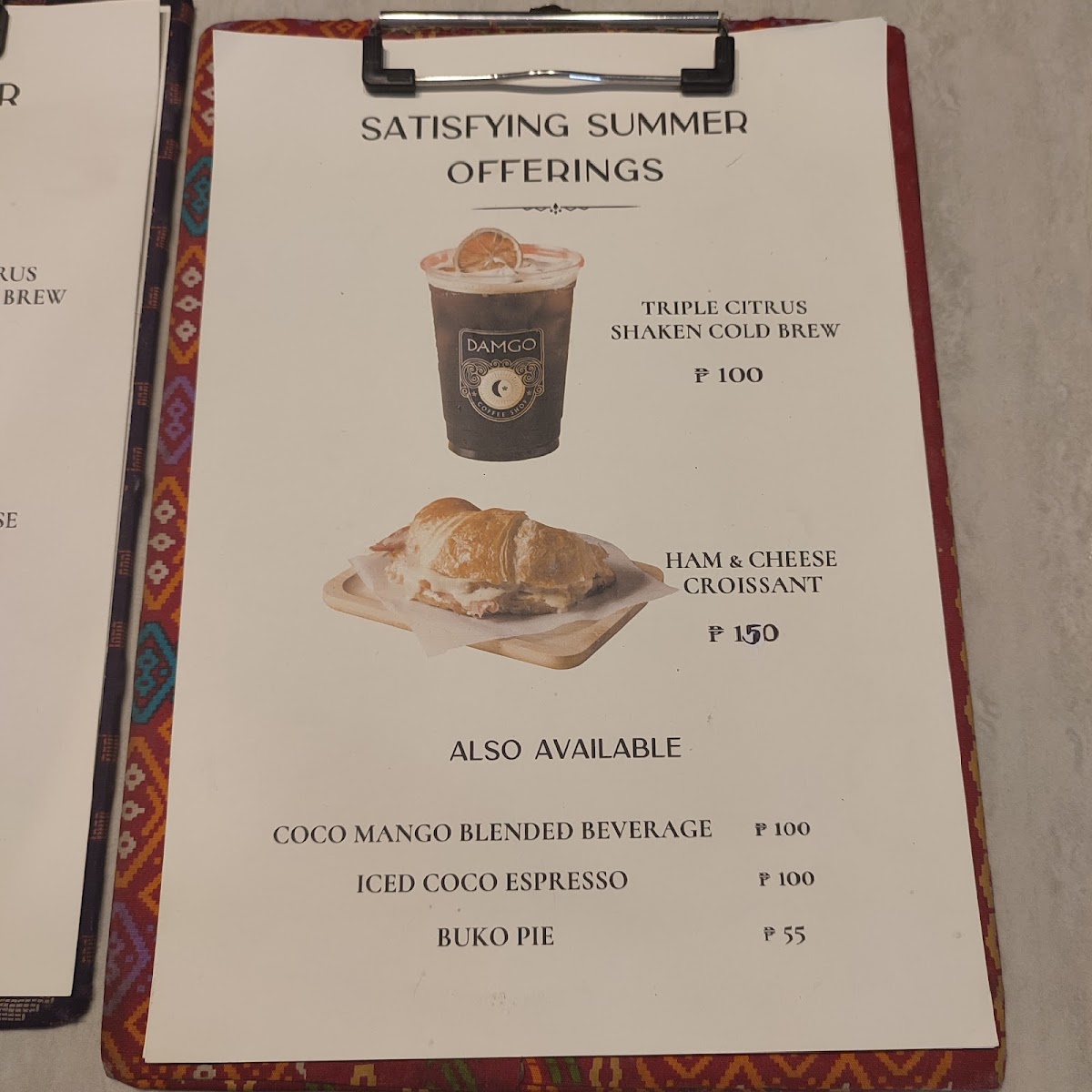 Damgo Coffee Shop Menu